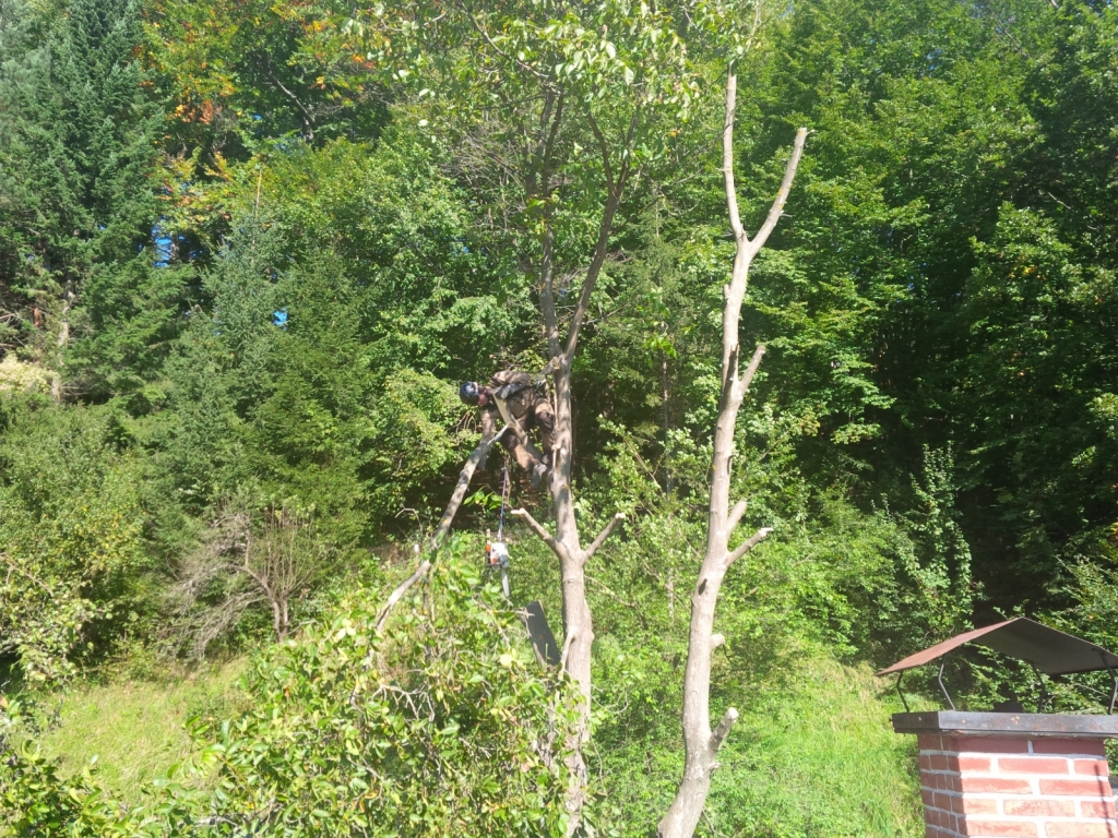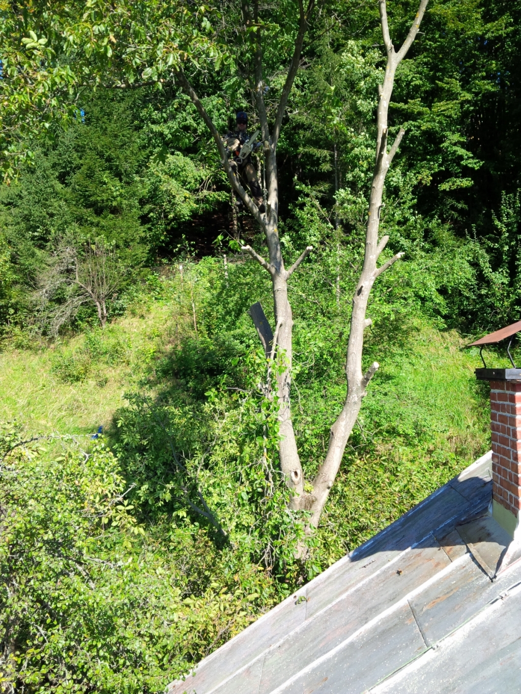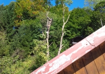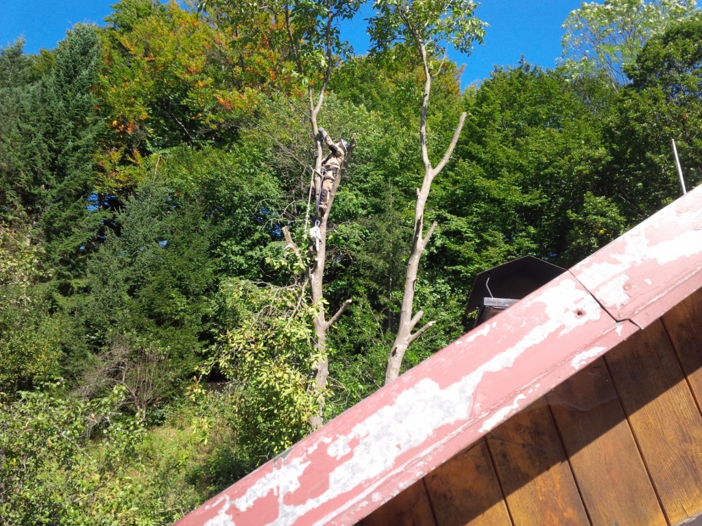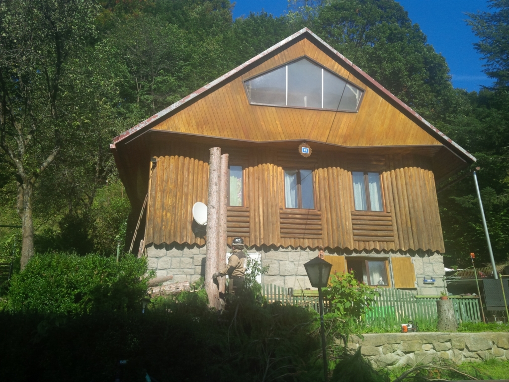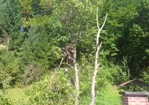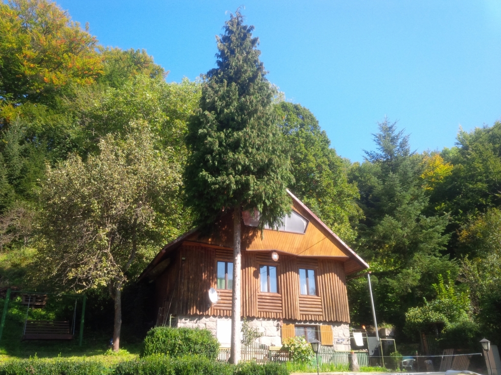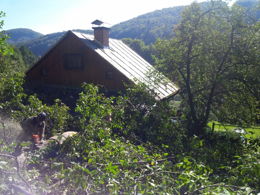 2x tuja 17m, orech, všetky v tesnej blízkosti chaty a nad jej strechou